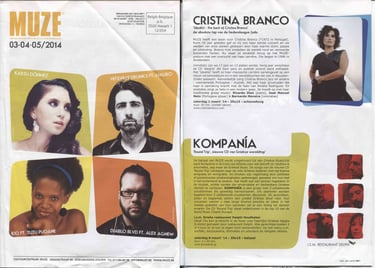 “KOMPANÍA played a concert that deserves a citation in the great tradition of the Bruges Festival” “……..a different ball game was Friday’s top of the bill ‘KOMPANÍA’, a classic five-piece rebétiko line-up built around singers KaterínaTsirídou, Sotíris Papatragiánnis and singer- bouzouki player Dimítris Kranídas. The start of the concert, presentation, choice of repertoire, set-building, skill, precision and finesse in the renditions, beautiful three or even four part harmony vocals, dynamics and the sheer joy of playing: they scored highly in all these segments. The beginning with Sotiris alone on stage, starting to play his baglamas into the devoted silence , slowly joined by the others…..This is in total contrast with the total visual inactivity of many Greek acts – something is happening! In other words: these people are ready to shine outside Hellas. Not only the presentation was excellent, inside the band things are in the right place too; the members have many other obligations, they play in different groups, take part in recording sessions; still they insist on working together as KOMPANÍA on a regular basis and embrace this old repertoire with love, passion and knowledge. What they are doing is not necessarily new, it’s a respectful contemporary rendition of what once was a living form of music, but this five piece band gives it a new soul, a transplant, which may keep it alive far into this century.”………. By Antoine Légat, 14-11-2012 www.folkroddels.be