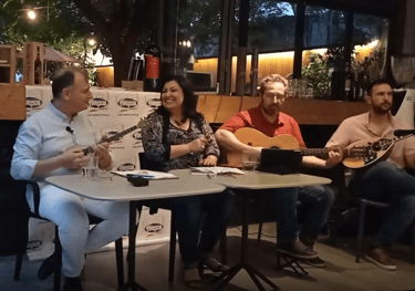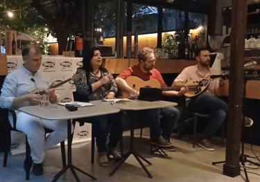 "Review for "Round Trip / Μετ' επιστροφής" album, by the Dutch MUSICFRAMES and Mattie Poels" The Greek ensemble KOMPANÍA recorded their new album “Round Trip”. An excellent follower from their debut “KOMPANÍA Live!”. A daring, innovative and very original variation on the rebétiko and smyrneïka after the revival of the 70’s. KOMPANÍA shows a musical round trip through a wonderful piece of Europe. KOMPANÍA started in 2011 in Athens and plays the Greek rebétiko and smyrneïka. Those days derived after the exodus from Izmir (Turkey) to Greece at the end of the 19th century. Music of the poor people accompanied on the baglama. KOMPANÍA adds a few ‘new’ instruments like the accordion, (slide) guitar and several percussion instruments to create a more progressive style. We hear Greek music but also Turkish and Jewish (Sefardic) and even folk elements. All hide in between the tones, like a silk-screen and always with the Greek music in the front. A lot of new composed music we hear on ‘Round Trip’, sung by Katerina Tsiridou, Sotiris Papatragiannis and Dimitras Kranidas, with a striking Kranidas because of his beautiful (Turkish) voice ornamentation. The music is played and sung with a gorgeous musical diction. Apart as well are the guest musicians Ulas Aksunger and slide-guitarist Loek Schrievers, who is also the recording engineer and producer of the album. This Greek group proves that rebétiko is still alive and full in development. By Mattie Poels, Musicframes, 05-01-2014 www.musicframes.nl